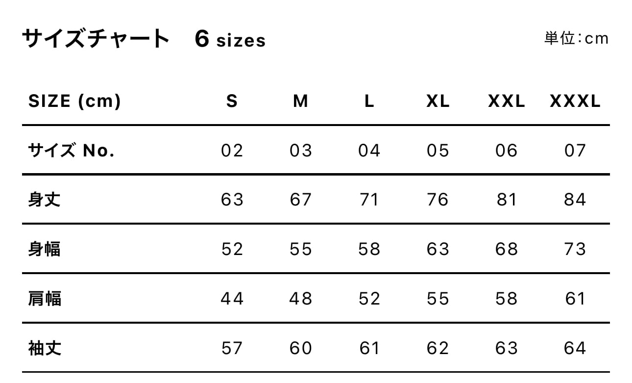 サイズ:S / M / L / XL / XXL ※サイズ表参照
