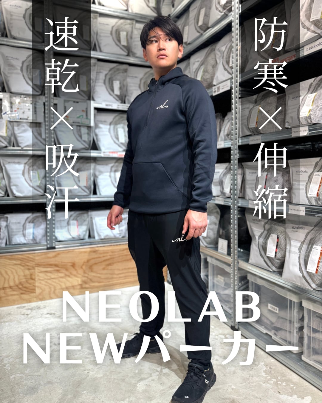 伸縮性・吸汗性・速乾性・防寒性を兼ね備えたNEOLABオリジナルスポーツフーディー。